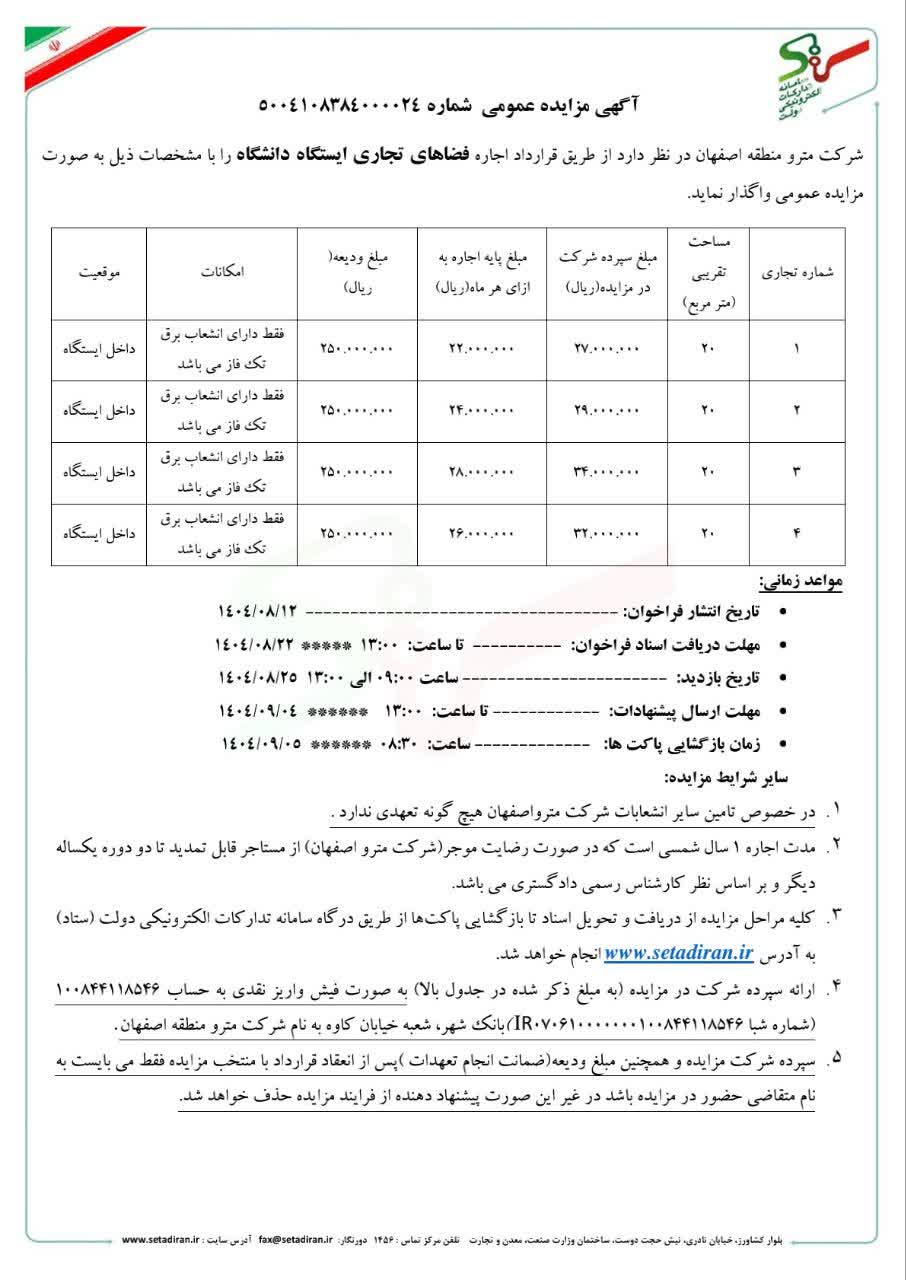 اجاره فضاهای تجاری ایستگاه دانشگاه