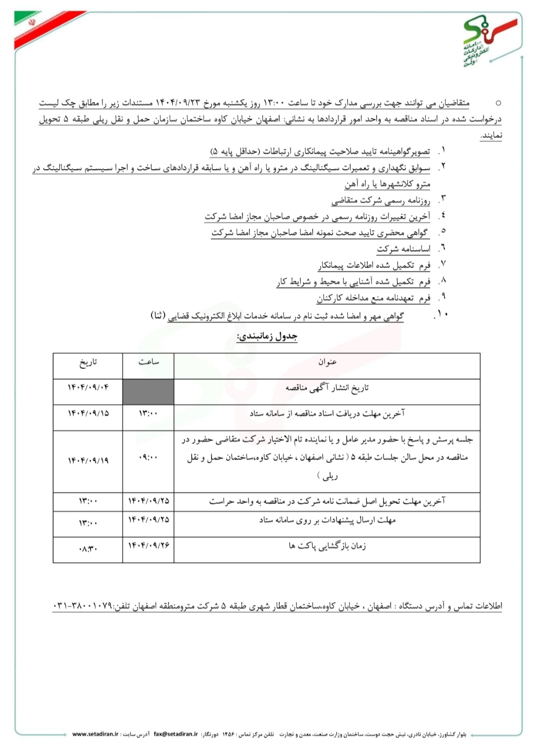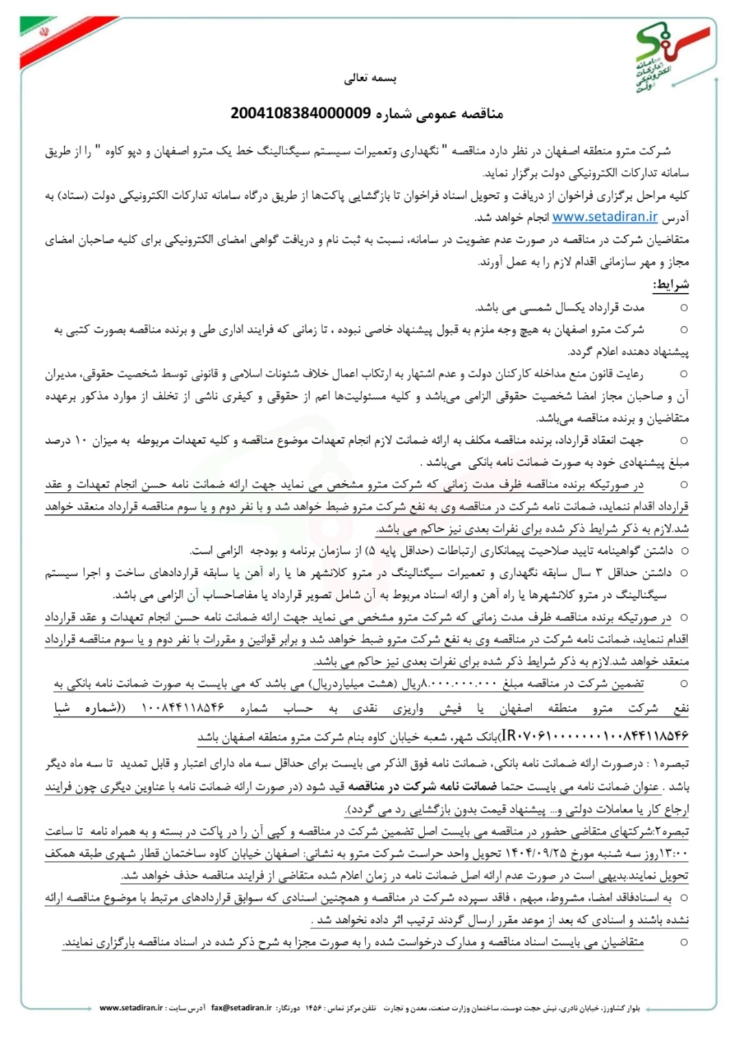 نگهداری و تعمیرات سیستم سیگنالینگ خط یک مترو اصفهان و دپو کاوه