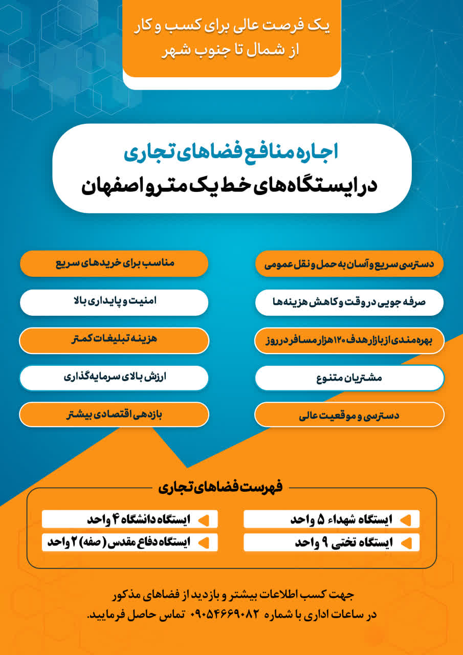 اجاره فضاهای تجاری شمالی، جنوبی و میانی ایستگاه کوی امام ( ره )